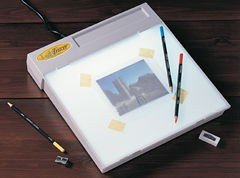 Although some animators use much larger and more expensive light boxes to draw with, this simple desktop version is a cheaper and more manageable alternative. We use these in all of our Manga and Anime workshops. The box provides a nice even lit area (no "hot spots") and a slight tilt to the drawing surface to make it more like a drafting table and easier to see what you are doing. The built-in pencil slot is handy for holding a few frequently-used pencils or pens. The lightweight plastic body and small size make it about as portable as you can expect a lightbox to be. It could use a carrying handle, though!
