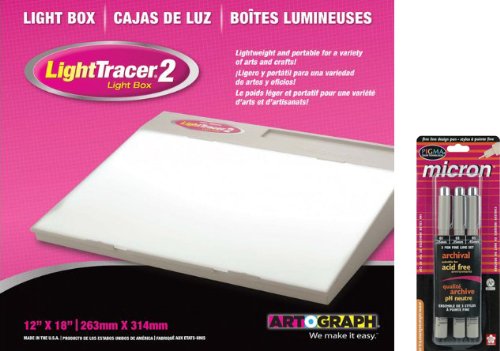 On sale now at cheap price, special discounts and fast shipping. I'm very pleased with their qualities and recommend it to someone searching for a high quality product with the newest features at an cheap. You can read review from buyers to find out more from their experience. Artograph 12-Inch-by-18-Inch LightTracer II Light Box with Sakura Pigma Micron Pen Set, 3-Pack, Black Ink has worked wonders for me and I hope it would do wonders on you too. So why spend much more time? Enjoy yourself, you know where to buy the best ones.