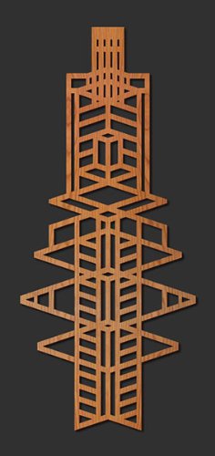 These dimensional laser cut art panels will add interest to any space or create a unique art piece to liven up your walls. Inspired by the architectural designs of Frank Lloyd Wright, this piece is adapted from one of the art glass windows in the Frederick C. Robie House, a dramatic Prairie style structure designed by Wright in 1908.