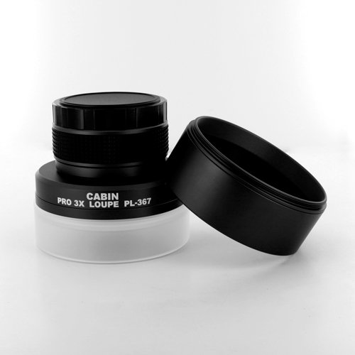 Cabin Magnifiers feature high performance superachromatic, multi-coated optical glass lens elements in a precision-engineered all-metal barrel housing. Includes interchangeable, threaded translucent and opaque hoods, and a built-in adjustable eyepiece diopter. Precision, super-achromatic design and multi-coated optics ensure true color fidelity, contrast and sharpness for the most demanding inspection needs. Experience the quality of Cabin Magnifiers, free from the eye strain common with magnifiers of lesser quality.Cabin Magnifier includes interchangeable screw-in translucent and opaque hoods, eyepiece cap. The magnifier may also be used without hood for viewing 3-dimensional objects.The translucent hood is ideal for viewing opaque objects such as prints. The silver metallic hood blocks extraneous light from entering the eyepiece when viewing rear-lit transparencies, negatives or for camera ground glass focusing.The knurled design on the exterior of the adjustable eyepiece provides an easy grip for smooth adjustment to individual eyesight needs, while maintaining a sophisticated, professional look.Magnification: 3XGreat for Magnifying 6X7 Medium Format Film