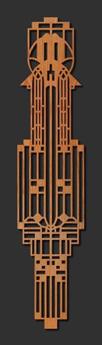 These dimensional laser cut art panels will add interest to any space or create a unique art piece to liven up your walls. Inspired by the architectural designs of Frank Lloyd Wright, this piece is an adaptation of one of two matching details in a window designed by Wright prior to 1900.