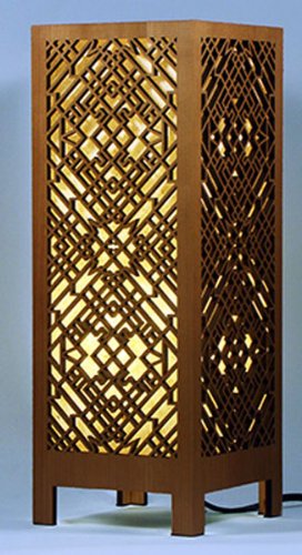Light up your home with interest and warmth with this Frank Lloyd Wright inspired Accent Lamp adapted from the pair of ornamental wood panels accenting the living room fireplace in the Heller House. Handmade lotka paper is adhered to a heat resistant sheet. Inline switch on a 5.5' cord. 10 watt compact fluorescent bulb included.